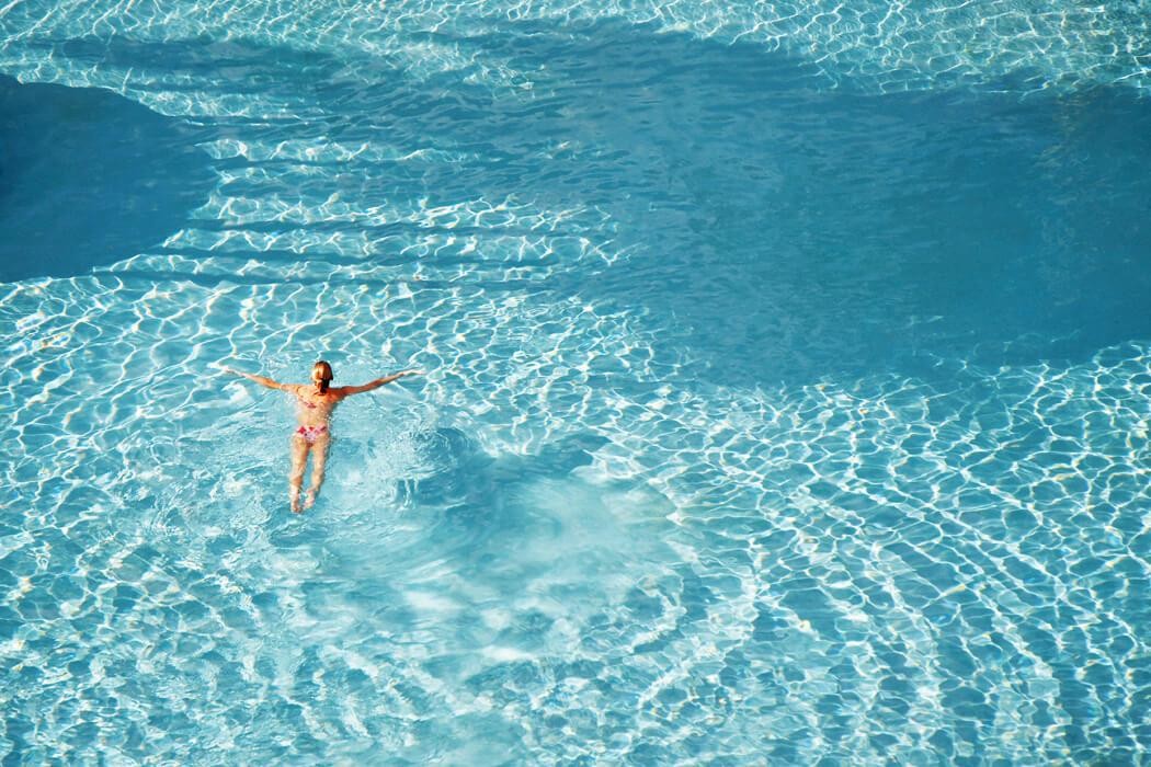 sezlonguri si umbrele de soare przy basenie